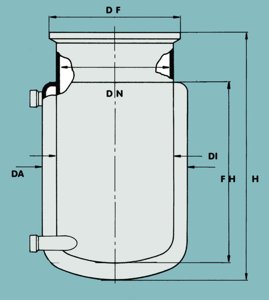 Плоские наземные сосуды реакции фланга, куртка, A, 158 мм, 3000 мл, 158 мм, 390 мм