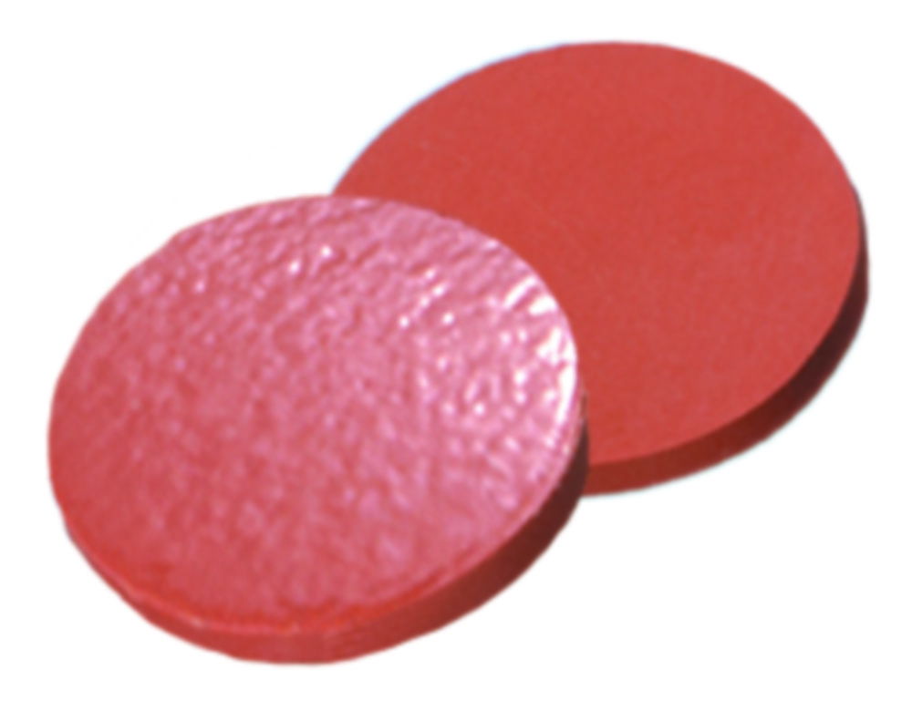 Поліпропіленові кришки з різьбленням для віалей N 10, в комплекті з септами, 1,3 мм, 60° по Шору A, натуральний каучук червоно-жовтогарячий/прозорий TEF, чорна, без отвору, 60° по Шору A