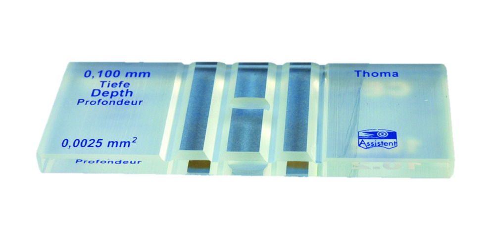 Подвійний поділ сітки. Ніяких весняних кліпів. Глибина осередку становить 0,1 мм. Поділ сітки відповідає великому квадрату камери Нойбауера, розташованої в центрі. Площа найменшого квадрата - 0,0025 мм2. Камера Тома використовується тільки для підрахунку тромбоцитів і червоних кров'яних тілець.