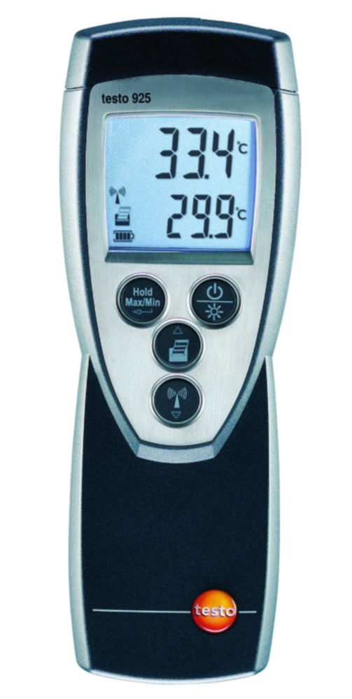 Без зонда. Економічний. Дуже міцний. З одним вимірювальним входом. З акумулятором і протоколом калібрування. Для °C, °F, °K. Функція тимчасової економії та стану заряджання акумулятора.